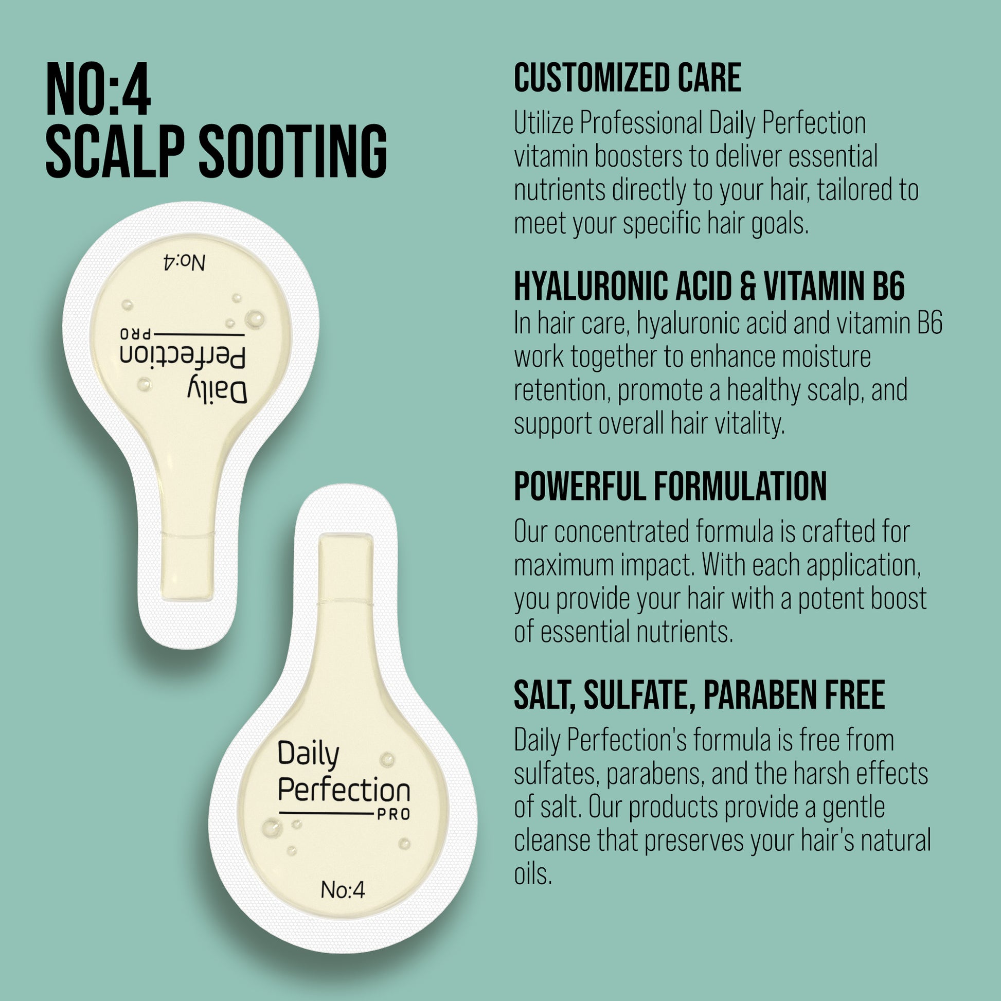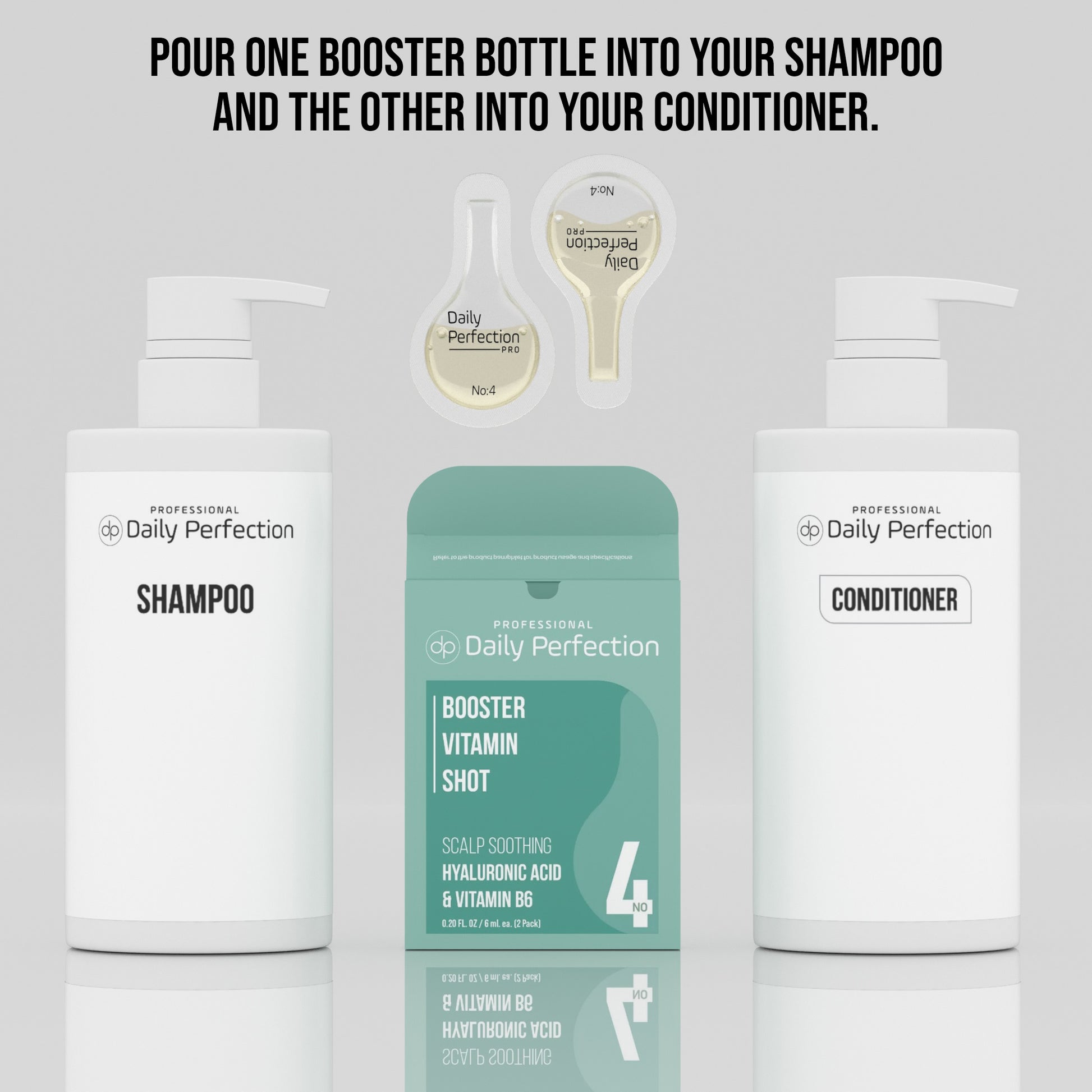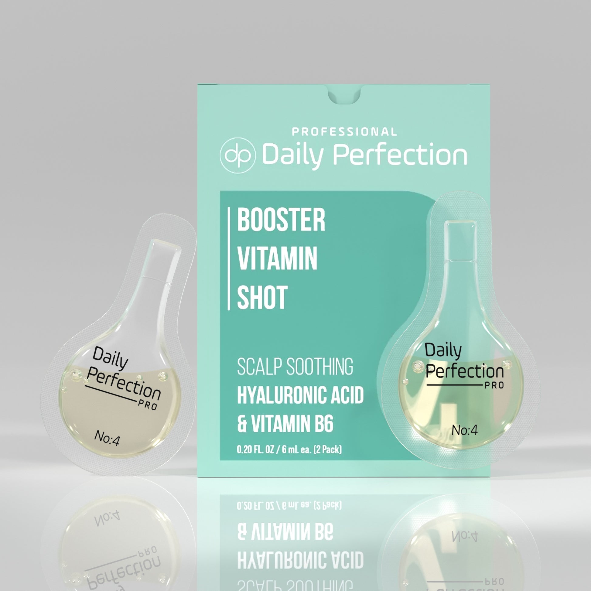 Personalize your hair care with Professional Daily Perfection Scalp Soothing Vitamin Booster Shot with Hyaluronic Acid and Vitamin B6. Specifically designed to enhance moisture retention, promote a healthy scalp, and support overall hair vitality.